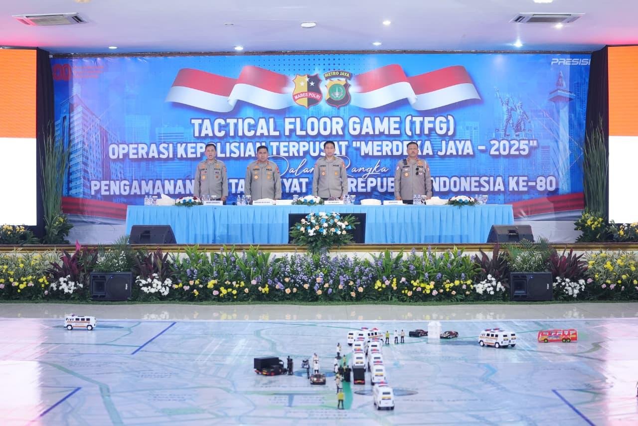 “Mabes Polri melalui Operasi Merdeka Jaya, bersama dengan Polda Metro Jaya, siap melaksanakan pengamanan seluruh rangkaian HUT RI ke-80,” tegas Agus saat memimpin Tactical Floor Game (TFG) Operasi Terpusat Merdeka Jaya 2025 di Aula Gedung BPMJ Polda Metro Jaya, Kamis (14/8/2025).