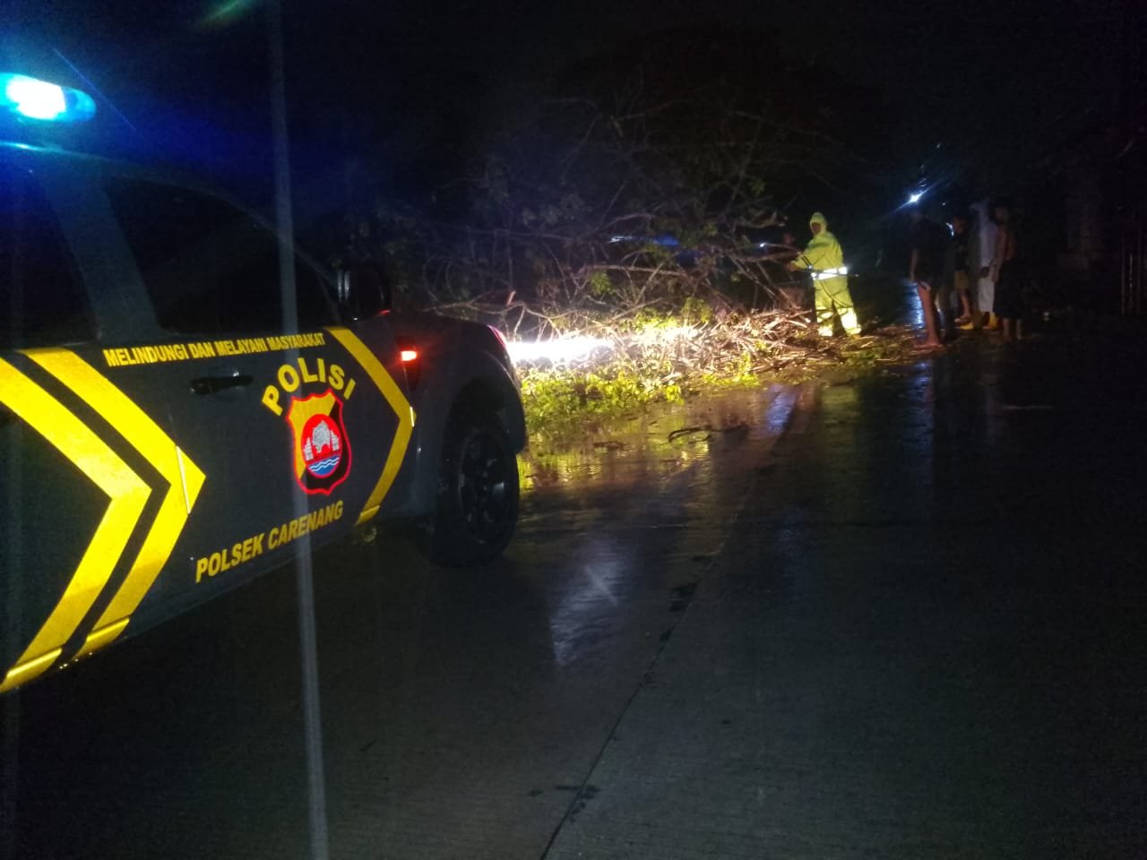 Namun, respon cepat dari personel Polsek Carenang berhasil mencegah potensi kecelakaan. Kapolsek Carenang, AKP Desma Priatna, SH, menjelaskan, “Pohon tersebut menghalangi jalan dan berpotensi menyebabkan kecelakaan lalu lintas. Anggota piket langsung menuju lokasi dan bersama warga sekitar mengevakuasi pohon tersebut agar jalan dapat dilalui kembali.”