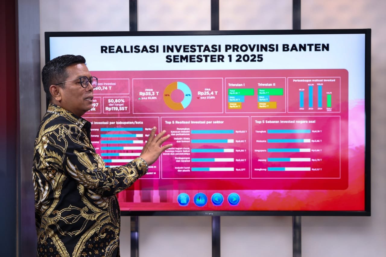 Andra Soni menjelaskan, pertumbuhan ekonomi Banten mencapai 5,33 persen pada semester I tahun 2025, melampaui rata-rata nasional sebesar 5,01 persen. Investasi yang terealisasi mencapai Rp60,74 triliun atau 50,80 persen dari target pemerintah pusat sebesar Rp119 triliun.