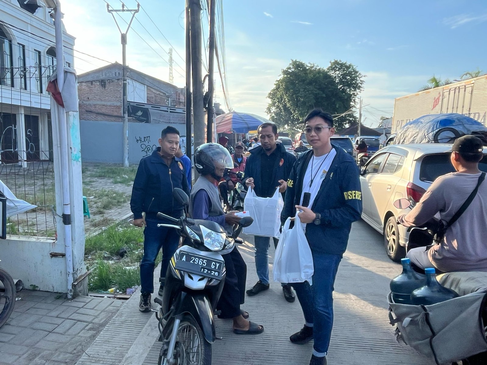 SERANG – Momen bulan suci Ramadhan yang penuh berkah, personil Satreskrim Polres Serang membagikan menu buka puasa (takjil) kepada masyarakat yang melintas di jalur arteri Serang – Jakarta, Desa Cisait, Kecamatan Kragilan, Kabupaten Serang, Rabu (05/03) petang.