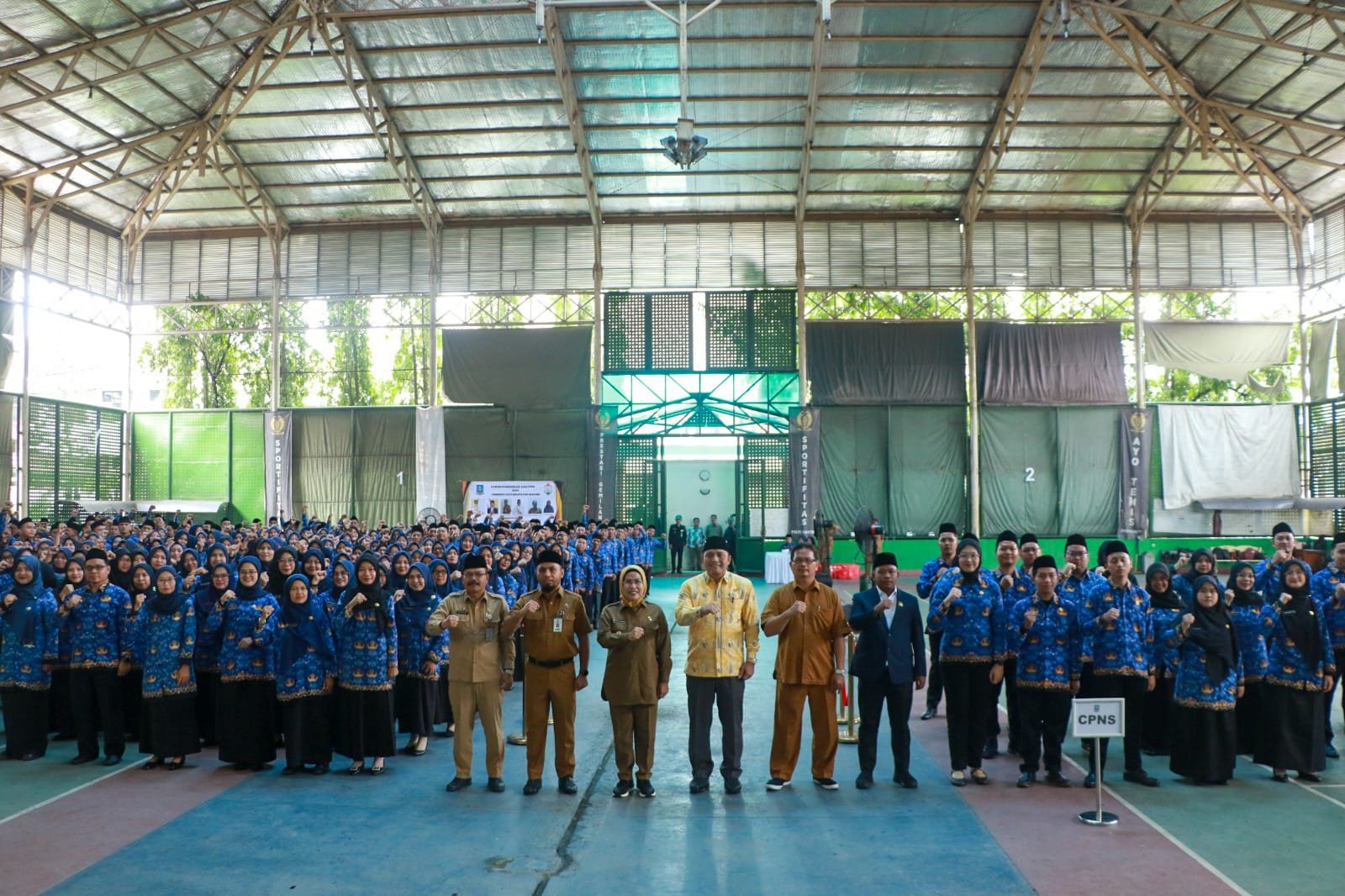 Bupati Serang Ratu Tatu Chasanah melantik sebanyak 40 Calon Pegawai Negeri Sipil (CPNS) dan Pengambilan Sumpah Janji Pegawai Pemerintah dengan Perjanjian Kerja (PPPK) Formasi Tahun 2024, serta penyerahan surat keputusan di lingkungan Pemerintah Kabupaten (Pemkab) Serang di Lapangan Tenis Indoor pada Selasa, 15 April 2025.