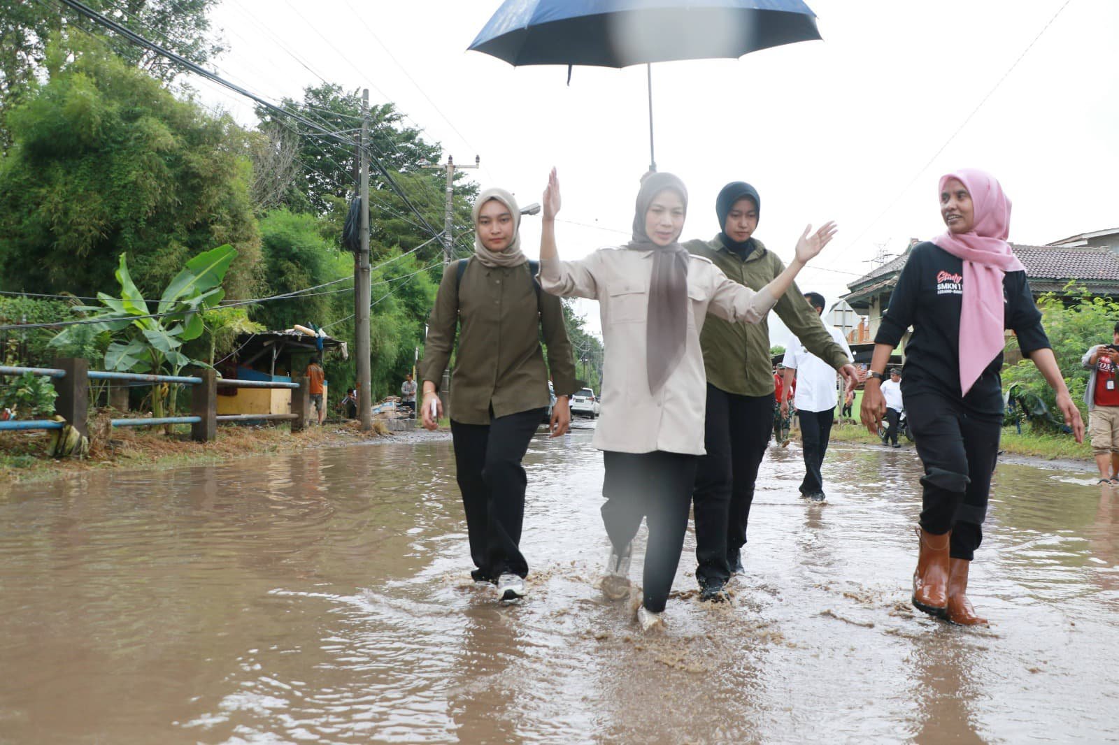 Ratu Zakiyah tak hanya melihat dari kejauhan. Ia memasuki rumah-rumah warga untuk memastikan kondisi mereka dan meninjau SMKN 1 Pulo Ampel yang dilaporkan terendam banjir cukup parah hingga sepinggang orang dewasa. Meski pagi ini banjir sudah mulai surut, dampaknya masih terasa.