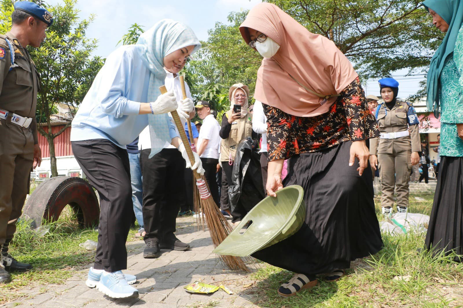 Bupati Serang Ratu Rachmatuzakiyah didampingi Wakil Bupati Muhammad Najib Hamas berjalan kaki di bawah terik matahari untuk membersihkan sampah. Permasalahan sampah, merupakan salah satu program prioritas 100 hari kerja Bupati-Wakil Bupati Serang periode 2025-2030.