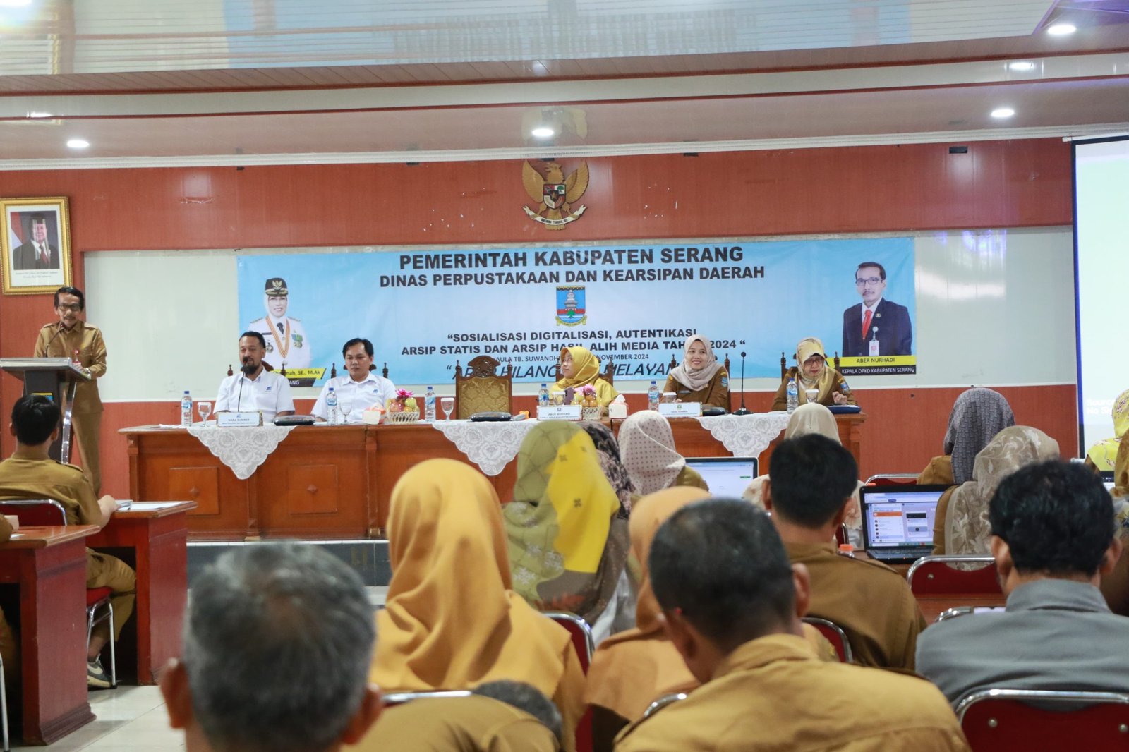 Hal itu disampaikan Kepala DPKD Kabupaten Serang, Aber Nurhadi, di sela Sosialisasi Digitalisasi, Autentikasi Arsip Statis, dan Arsip Hasil Alih Media Tahun 2024 bertemakan ‘Arsip Hilang Aset Melayang’ di Aula Tb Suwandi pada Senin, 4 November 2024.