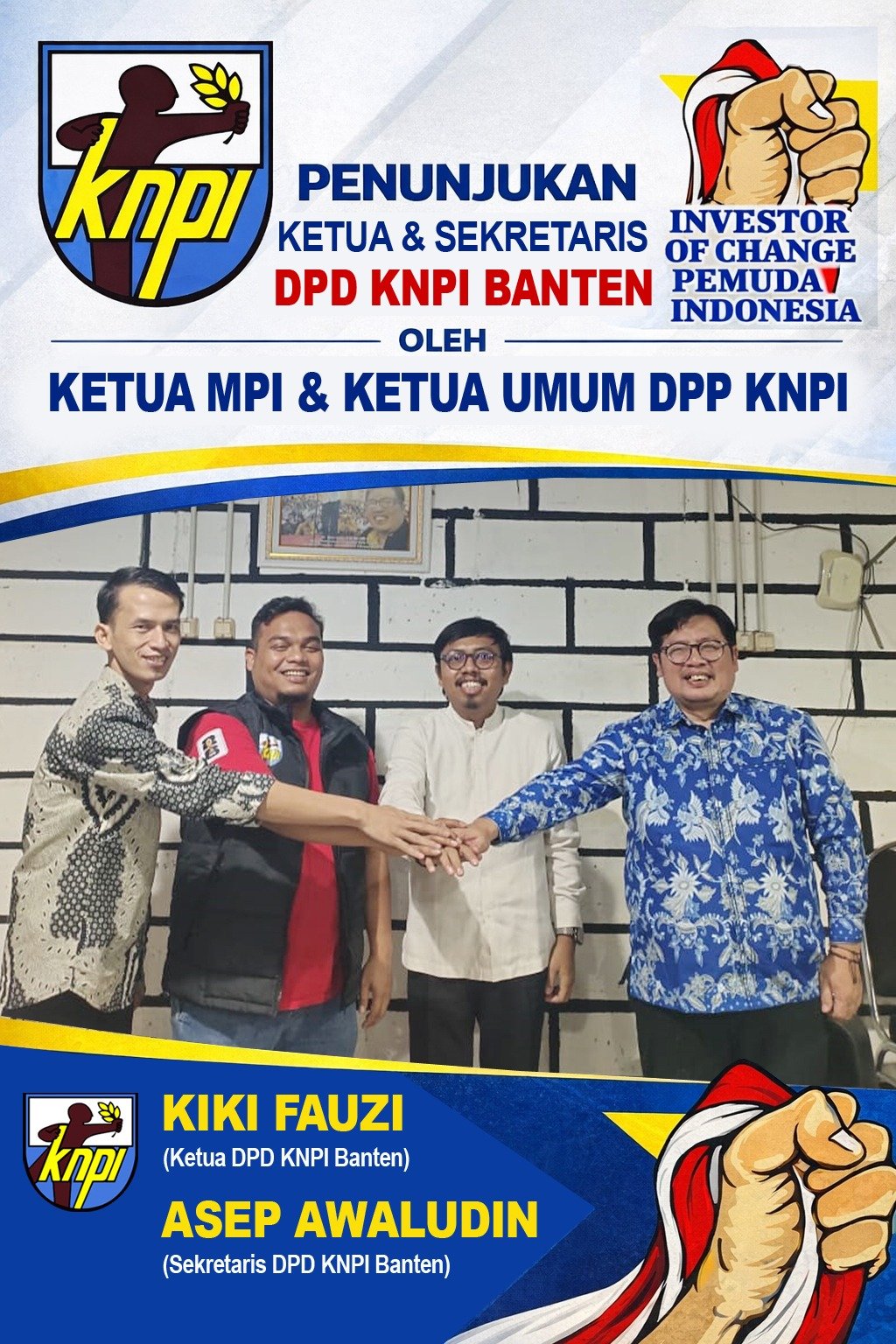 “DPP KNPI menugaskan Saudara Kiki Fauzi untuk merapikan kembali KNPI Banten, mulai dari tingkat provinsi hingga kabupaten dan kota, agar organisasi berjalan sesuai dengan aturan dan semangat persatuan,” tegasnya.