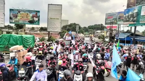 Buruh yang datang terdiri dari beragam usia, mulai dari pekerja pabrik yang mengenakan seragam kerja lengkap hingga kelompok mahasiswa yang turut mendukung dengan membawa poster kreatif berisi tuntutan. Riuh suara orasi dan nyanyian semangat memperkuat suasana, sementara beberapa pemimpin aksi secara bergantian menyampaikan pidato tentang kondisi ekonomi pekerja dan kebutuhan mendesak untuk penetapan upah yang lebih tinggi.