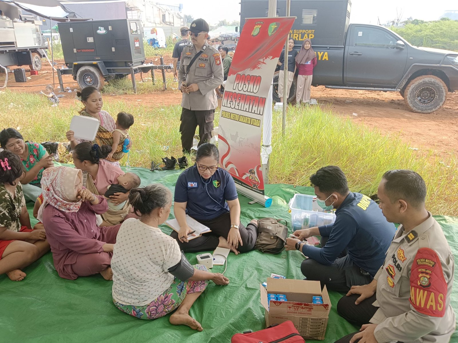 JAKARTA – Polda Metro Jaya memberikan trauma healing kepada korban kebakaran di Kapuk Muara, Penjaringan, Jakarta Utara. Direktorat Binmas Polda Metro Jaya turun langsung ke lokasi pengungsian, memberikan perhatian khusus kepada anak-anak yang terdampak.