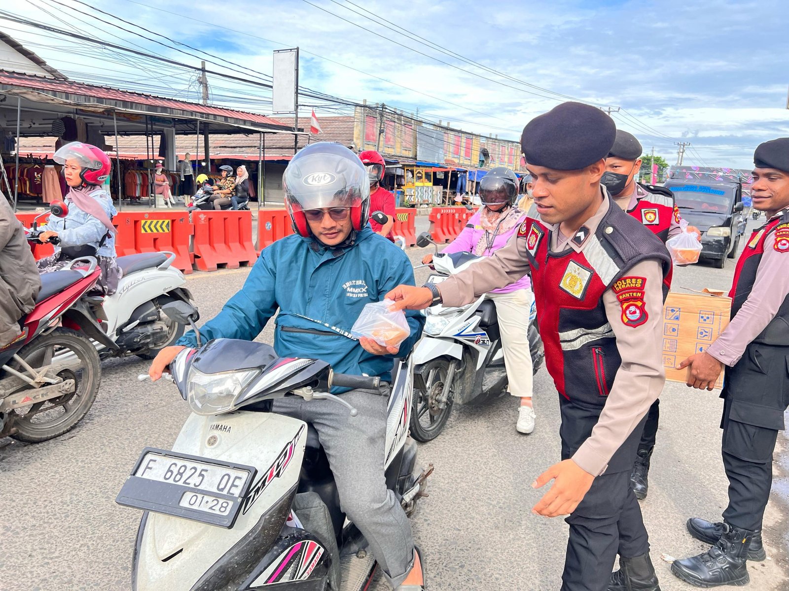 Sambil memberikan takjil, menurut Kadat Samapta , seluruh personil juga memberikan imbauan kepada seluruh pengendara agar mentaati rambu-rambu lalulintas, berhati-hati dan tidak ugal-ugalan di jalanan.