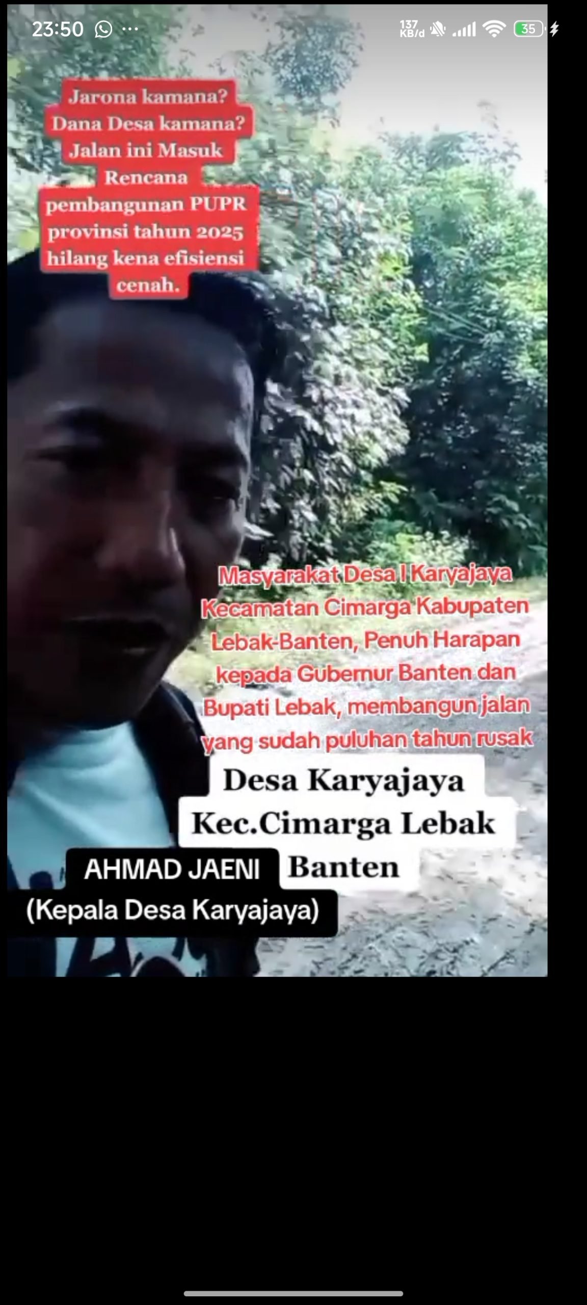 Keluhan ini disampaikan langsung oleh warga melalui sebuah video live streaming yang viral di media sosial. Dalam video tersebut, terlihat warga yang kecewa karena proyek pembangunan jalan yang dijanjikan dari dana PUPR Provinsi Banten tahun 2025, rupanya dibatalkan dengan alasan efisiensi anggaran.