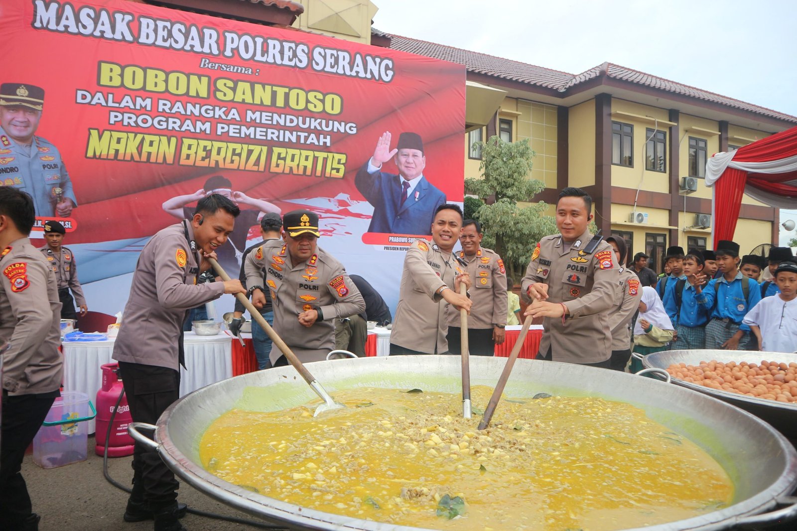 Kapolda Irjen Suyudi Ario Seto mengatakan bahwa acara masak dan makan besar ini merupakan bagian dari program pemerintah Prabowo Subianto makan bergizi gratis yang diikuti 1.000 murid-murid sekolah dasar dari 12 Polsek jajaran Polres Serang.