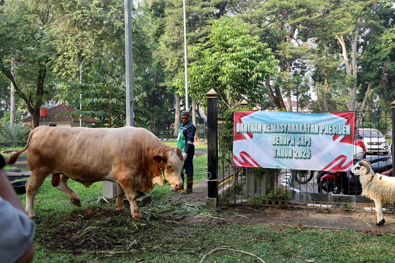 “Alhamdulillah tadi saya telah menyerahterimakan sapi kurban dari Bapak Presiden untuk wilayah Banten dengan bobot 1,1 ton,” ungkap Andra Soni usai menyaksikan penyembelihan di Halaman Gedung Negara Provinsi Banten, Jumat (6/6/2025).