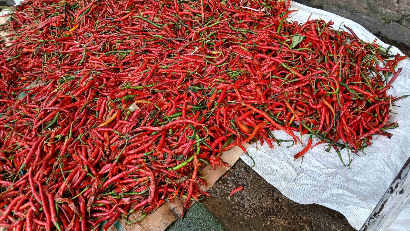 “Cabai dari Aceh itu lembek, tidak tahan lama. Kalau menurut saya, lebih cocok untuk dibuat sambal saja daripada dijual segar seperti ini,” ujarnya sembari menunjukkan beberapa ikat cabai yang sudah tampak layu ketika diletakkan di atas meja dagangnya. Ia menjelaskan bahwa selama ini pembeli di pasar tradisionalnya lebih memilih cabai yang terlihat segar, kencang, dan berwarna merah menyala—karakteristik yang menurutnya kurang tampak pada cabai asal Aceh tersebut.