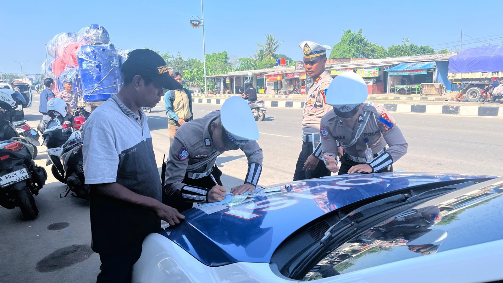 Direktur Lalu Lintas (Dirlantas) Polda Banten, Kombes Pol Leganek Mawardi, menjelaskan, “Pada hari ketujuh ini, petugas memberikan teguran tertulis dan tilang di tempat kepada pengendara sepeda motor yang tidak menggunakan helm, pengendara dengan kecepatan tinggi, pengendara melawan arus, serta pengemudi mobil yang tidak menggunakan sabuk pengaman,” ujarnya pada Minggu (20/07).