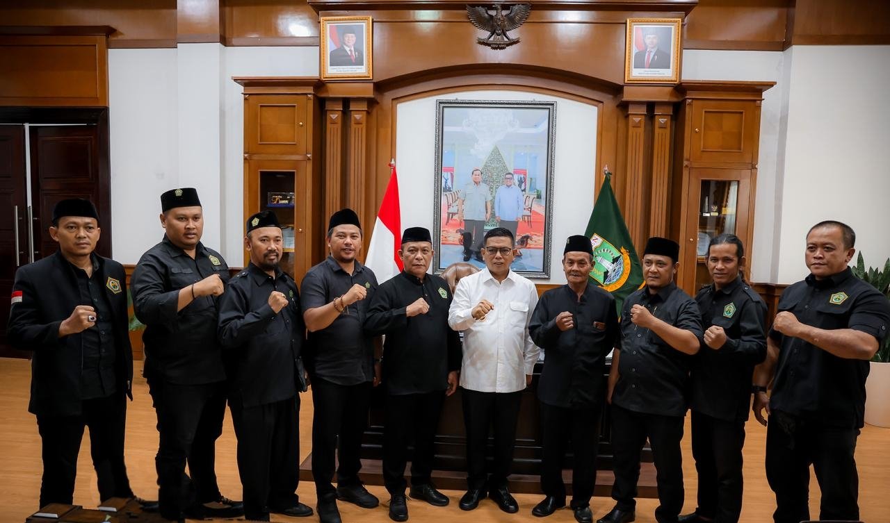 SERANG – Gubernur Banten, Andra Soni, menerima kunjungan dari Dewan Pengurus Pusat (DPP) Perguruan Pencak Silat Terumbu Banten di ruang rapat Gubernur Banten, Kota Serang, pada Jumat (24/10/2025). Pertemuan ini membahas upaya pelestarian seni bela diri pencak silat sebagai bagian tak terpisahkan dari warisan budaya daerah Banten yang kaya.