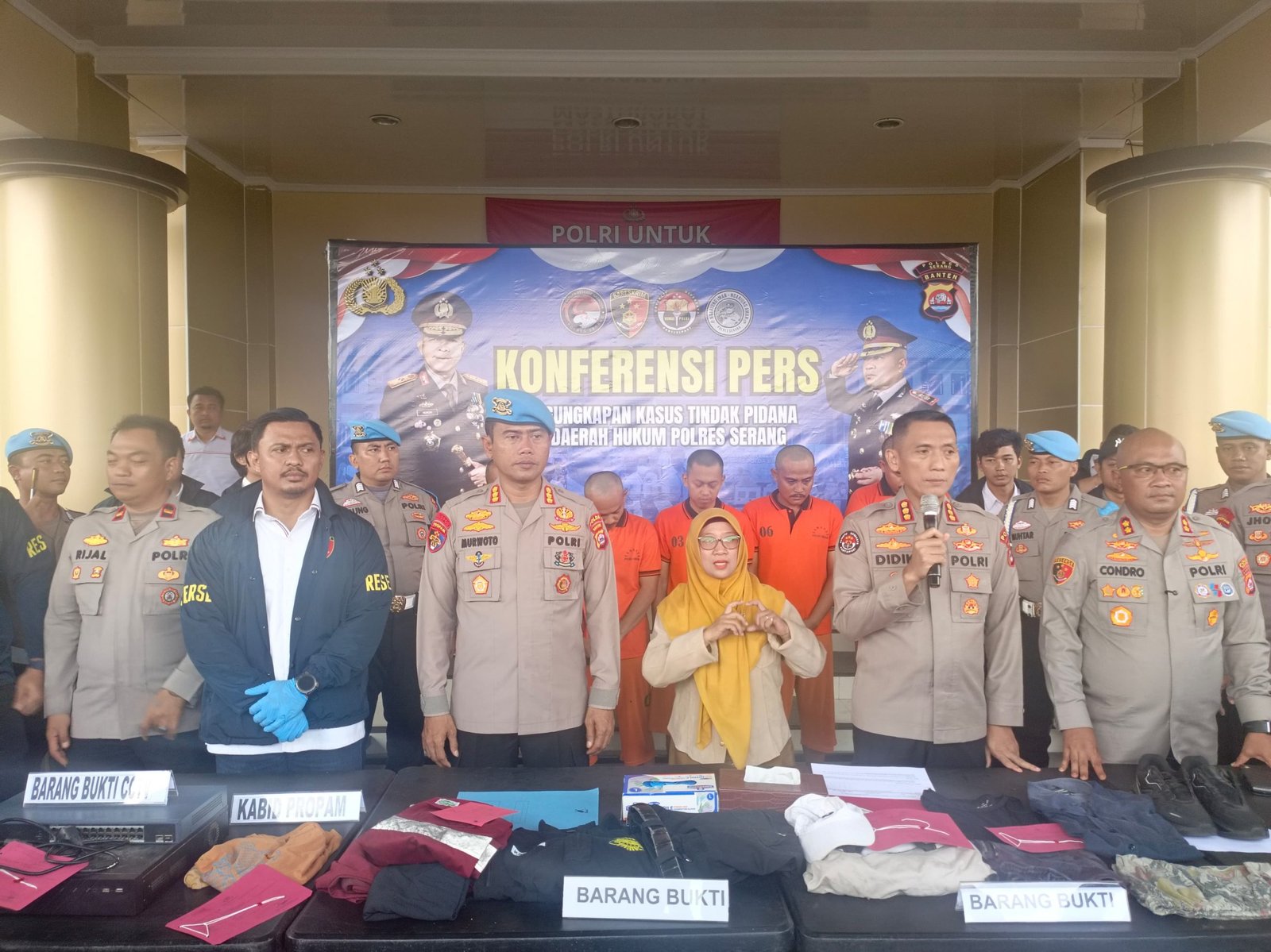 Konferensi pers tersebut juga dihadiri oleh sejumlah pejabat penting, termasuk Kabid Propam Polda Banten Kombes Murwoto, Kabidhumas Kombes Didik Hariyanto, Kasatreskrim AKP Andi Kurniady ES, dan Ps Kasihumas Ipda Rijal Nusa Bakti.