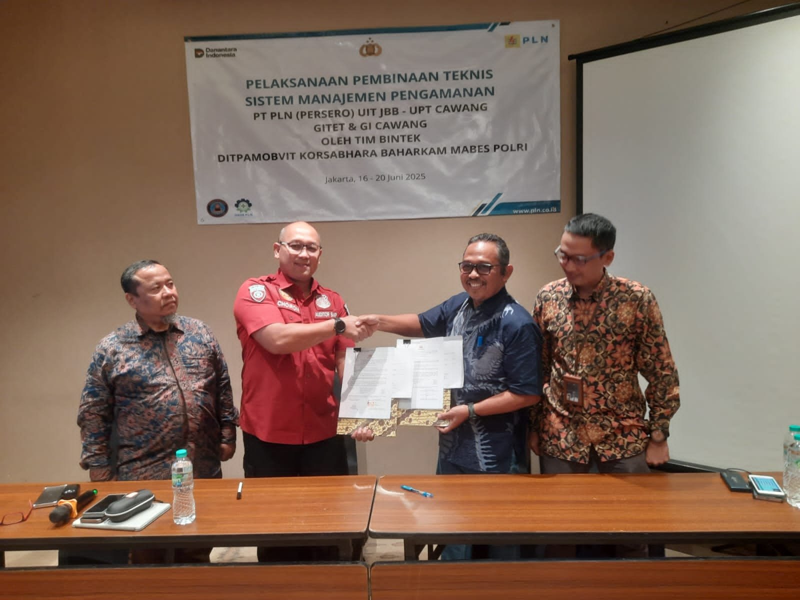 JAWA BARAT – PT PLN Persero UIT JBB, UPT Cawang, GISTET, dan GIS Cawang berhasil menyelesaikan Pembinaan Teknis (Bintek) Implementasi Sistem Manajemen Pengamanan (SMP) Obvitnas dengan predikat “Perak”. Bintek selama lima hari tersebut resmi ditutup oleh Kombes Pol Choiron El Atiq, S.H., S.I.K., pada Jumat, 20 Juni 2025, di Swissbell Hotel Kalibata.