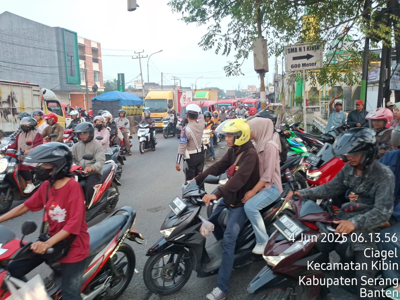 SERANG – Personel Satuan Lalu Lintas (Satlantas) Polres Serang melakukan pengaturan lalu lintas di jalur arteri Serang-Jakarta dan titik rawan kemacetan lainnya pada Rabu (4/6/2025).