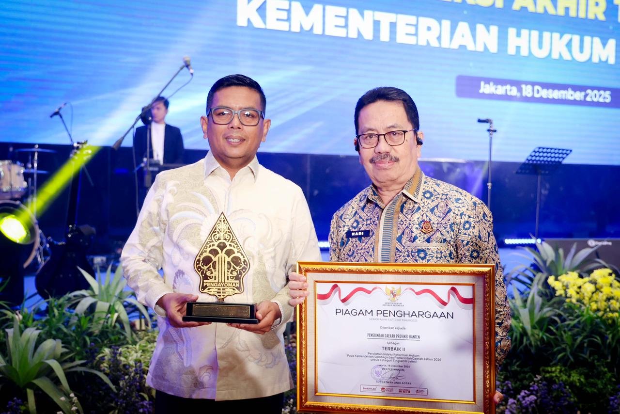 JAKARTA – Pemerintah Provinsi (Pemprov) Banten kembali mencatatkan prestasi gemilang di tingkat nasional. Kali ini, provinsi yang dipimpin Gubernur Andra Soni ini berhasil meraih Peringkat II Nasional dalam Indeks Reformasi Hukum (IRH) Tahun 2025, sebuah capaian yang menunjukkan komitmen kuat Pemprov Banten dalam menghadirkan regulasi yang berkualitas, transparan, dan tepat sasaran. Penghargaan bergengsi ini diselenggarakan oleh Kementerian Hukum dan HAM Republik Indonesia sebagai bentuk apresiasi terhadap upaya pemerintah daerah dalam memperbaiki sistem hukum serta produk regulasi yang diterbitkan.
