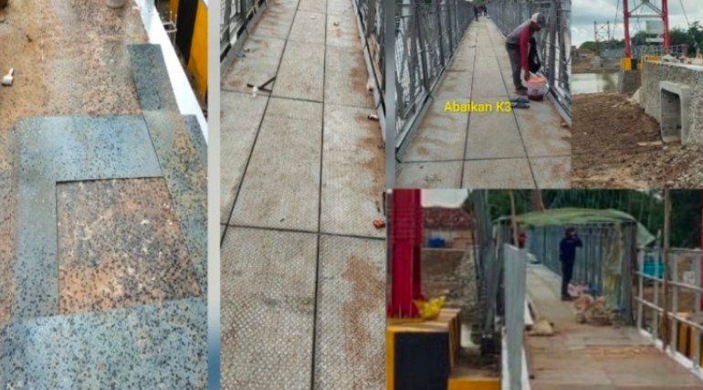 SERANG – Pembangunan jembatan gantung diduga pelaksana Kontraktor PT.MANGGALA DUTA tabrak aturan KONTRUKSI, dimana dugaan proyek tidak sesuai spesifikasi teknis kerja dan kontrak.