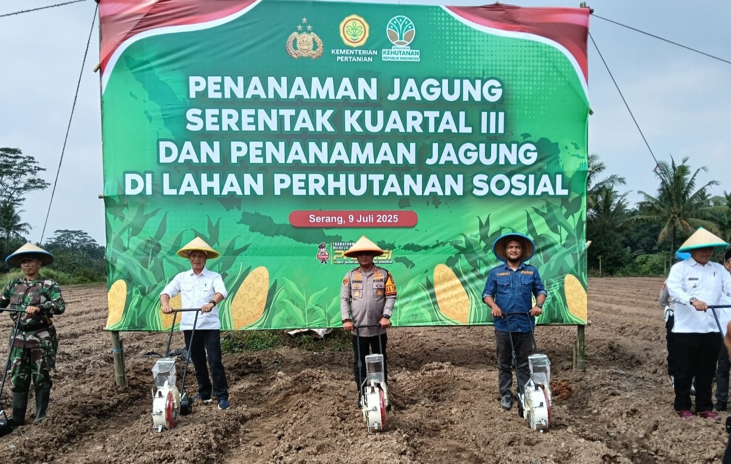 SERANG – Polres Serang dan jajaran Polseknya berpartisipasi aktif dalam program Ketahanan Pangan (Ketapang) Presiden RI Prabowo Subianto dengan melaksanakan penanaman jagung serentak kuartal III seluas 16,1 hektar pada Rabu (9/7/2025). Kegiatan yang dipimpin langsung Kapolres Serang AKBP Condro Sasongko melalui zoom meeting dari Kampung Kapundung, Desa Silebu, Kecamatan Kragilan ini menunjukkan komitmen nyata Polri dalam mendukung ketahanan pangan nasional.