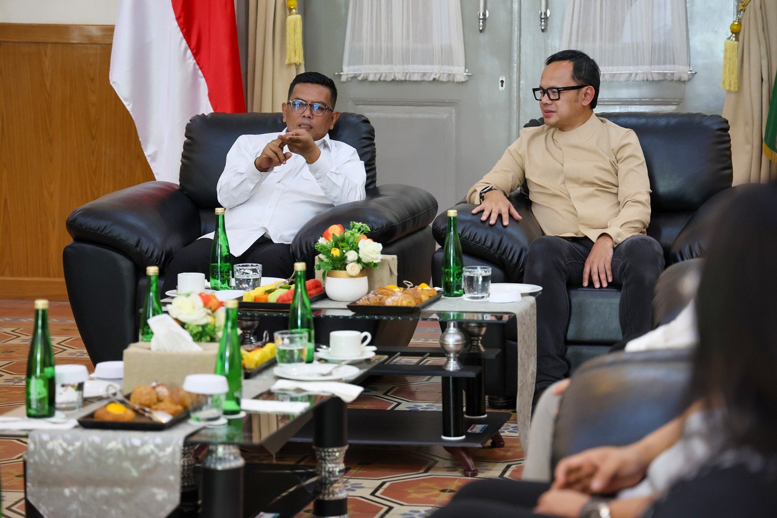 Kunker Bima Arya diterima Gubernur Banten Andra Soni. Turut mendampingi Penjabat (Pj) Sekretaris Daerah Provinsi Banten Nana Supiana, Kepala Badan Pengelolaan Keuangan dan Aset Daerah Provinsi Banten Rina Dewiyanti, Kepala Biro Pemerintahan Gunawan Rusminto, serta Kepala Biro Administrasi Pimpinan dan Protokol Beni Ismail.